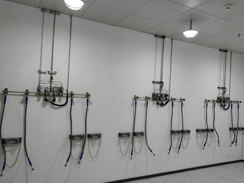 7.氣瓶間內是儲存的氣瓶運用帶防倒鏈的氣瓶支撐架統一,氣瓶支撐架穩固抗用、美觀性大膽。氣瓶支撐架運用鋁硬質合金加工而成。